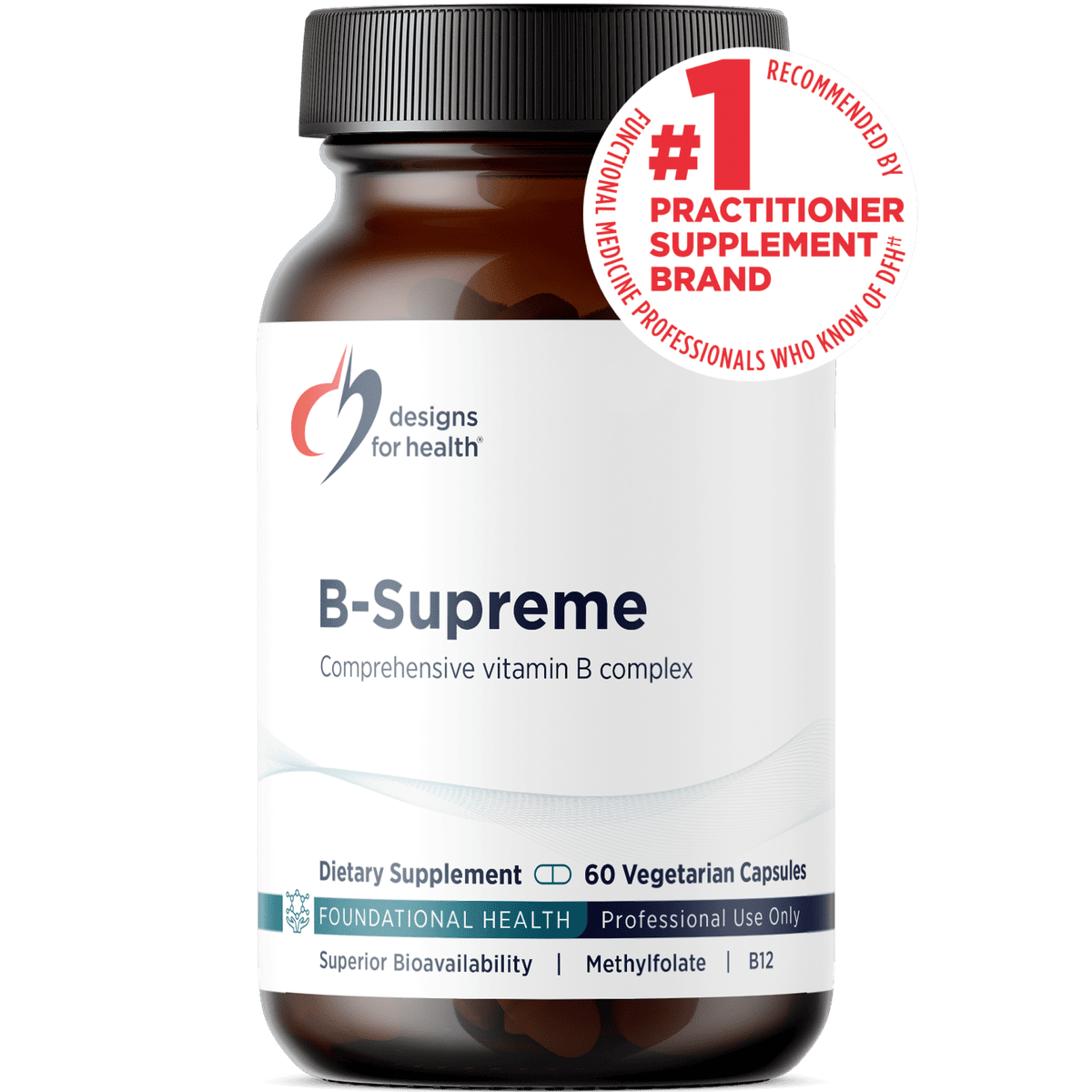 B-Supreme provides a complete B-complex with methylated forms including B12 as methylcobalamin and folate as L-5-MTHF. Essential for patients with MTHFR variants who can’t process standard folic acid. Supports energy metabolism, nervous system health, stress response, and cognitive function. Active forms ensure maximum bioavailability.