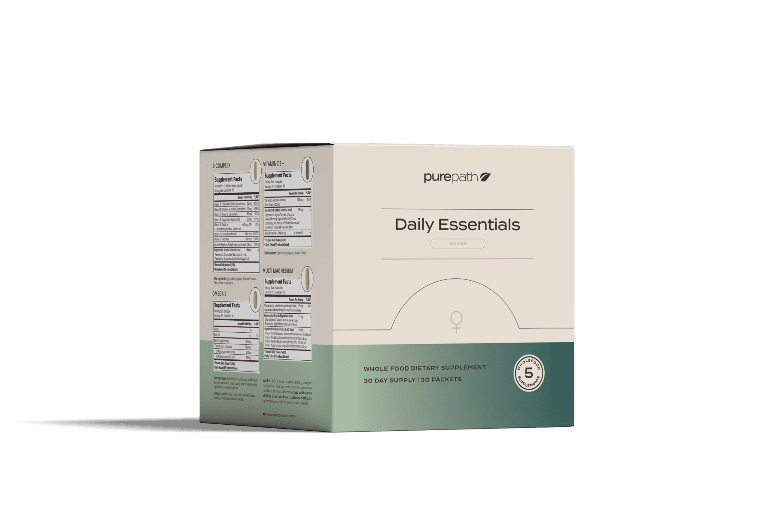 Daily Essentials for Women provides five targeted supplements in convenient daily packets: Women’s Multivitamin, Vitamin D3 + Probiotics, Optimal Omega, B-Complex with Delayed Release, and Magnesium Glycinate. Formulated for women’s unique nutritional needs including hormone balance and bone health.