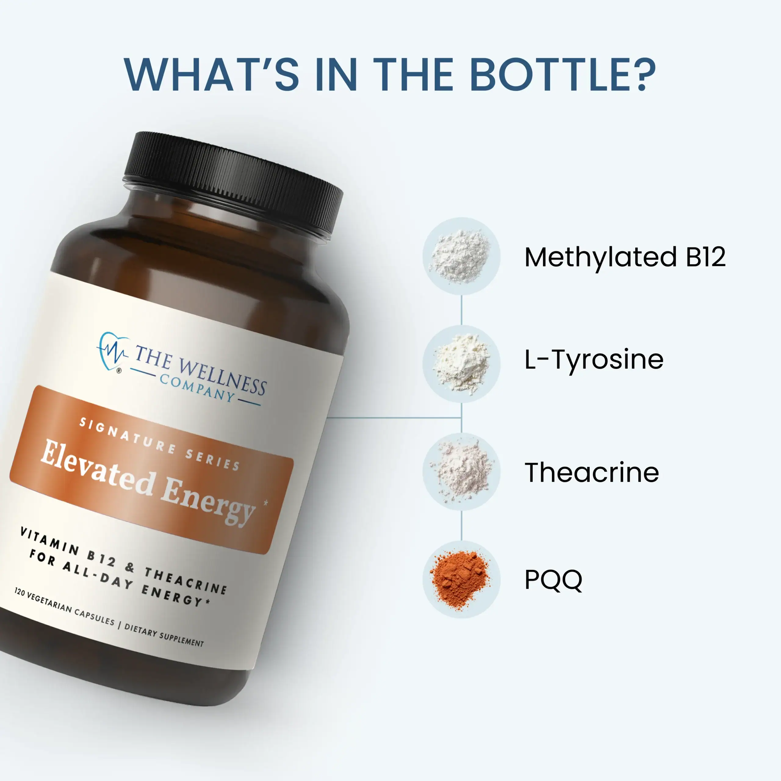 Elevated Energy combines activated B vitamins, which are essential cofactors for cellular energy production, with adaptogenic herbs that help the body manage physical and mental stress. Unlike stimulant-based energy products, this formula supports energy at the mitochondrial and adrenal level โ promoting stamina and mental focus without the jitteriness or crash associated with caffeine-heavy alternatives. It is designed for sustained, balanced vitality from morning through the afternoon.