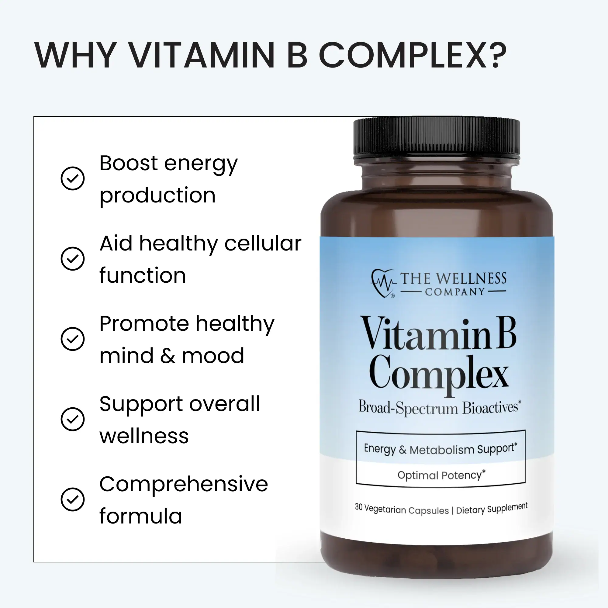 - Provides all eight B vitamins for comprehensive energy metabolism support